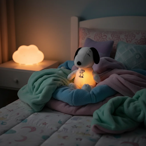 Este adorable perrito de peluche está diseñado para calmar, acompañar y reconfortar durante el sueño. Suave, cálido y con un sistema de iluminación suave que imita una respiración tranquila, crea un ambiente perfecto para relajarse.