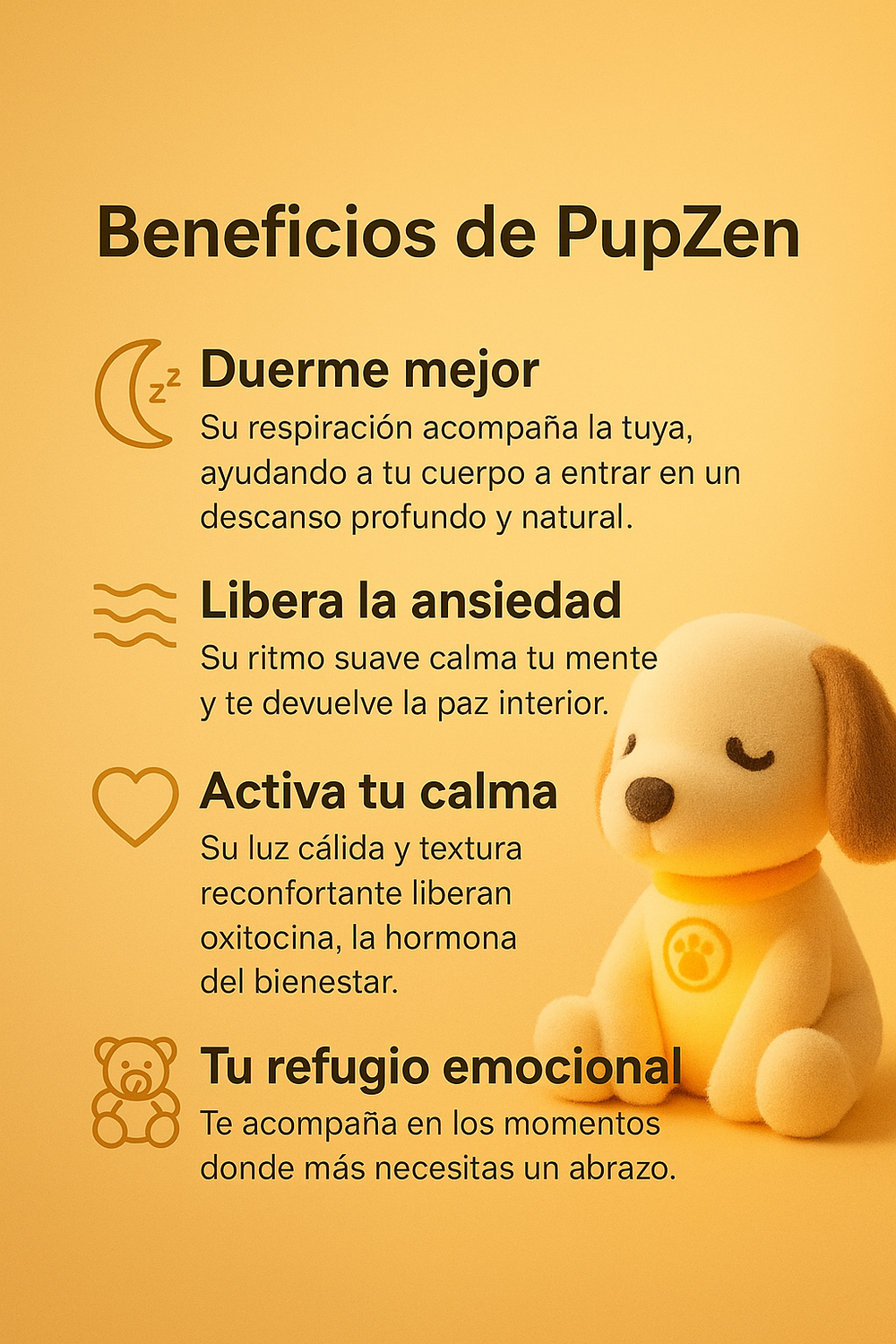 Efectivamente, PUPZEN se fundamenta en el principio de coherencia respiratoria, una técnica ampliamente utilizada en terapias de relajación. Al seguir su ritmo, tu sistema nervioso reduce el estrés y fomenta un sueño profundo de forma natural.